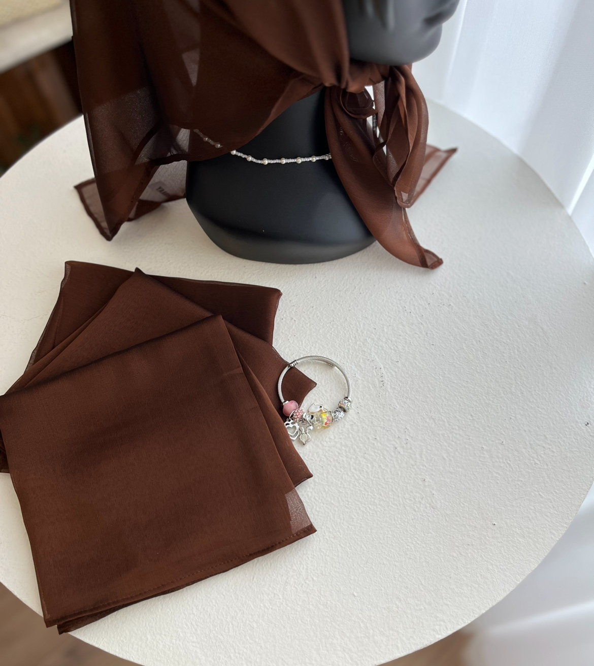 بلاخره نوبت رسید به قهوه ای سوخته ☕️ مینی اسکارف ( روسری کوچولو)🦦 جنس : حریر لطیف وارداتی 🟤 ابعاد: ۷۰ در ۷۰ مربعی 🟫 ایستایی: گره بخوره قابل قبوله 🤎